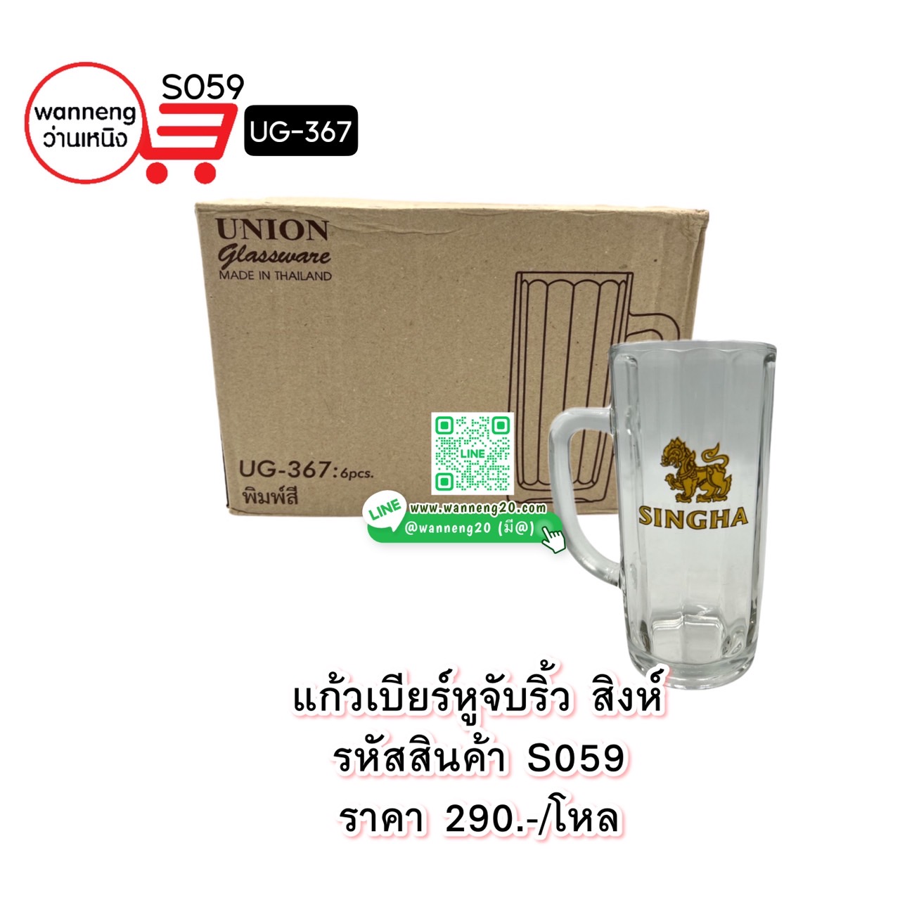 S059 แก้วเบียร์หูจับ (สิงห์) UG-367 1 โหล