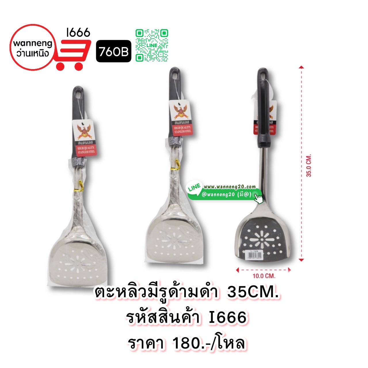 I666 ตะหลิวมีรุด้ามดำ 35cm. 760B 1 โหล