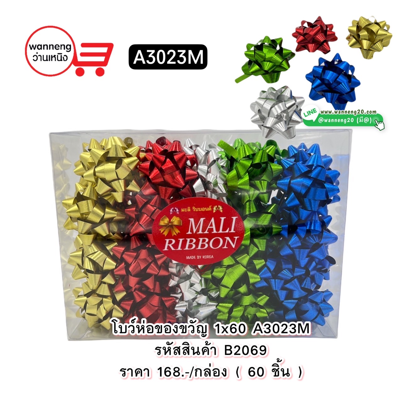 B2069 โบว์ห่อของขวัญ 1x60 A3023M 1 กล่อง 60 ชิ้น