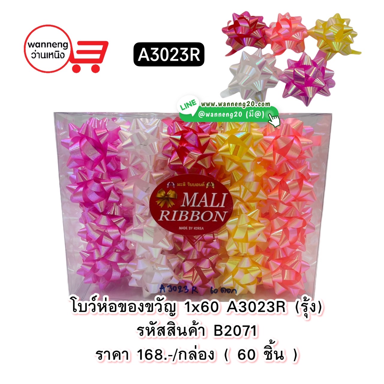 B2071 โบว์ห่อของขวัญ 1x60 A3023R (รุ้ง) 1 กล่อง 60 ชิ้น