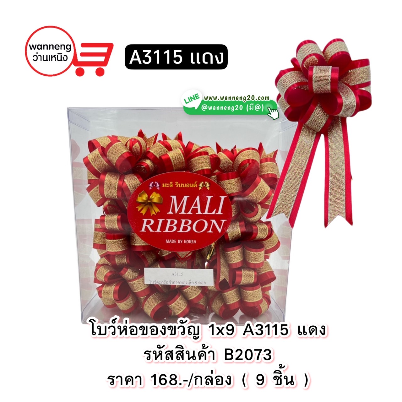 B2073 โบว์ห่อของขวัญ 1x9 A3115 แดง 1 กล่อง 9 ชิ้น