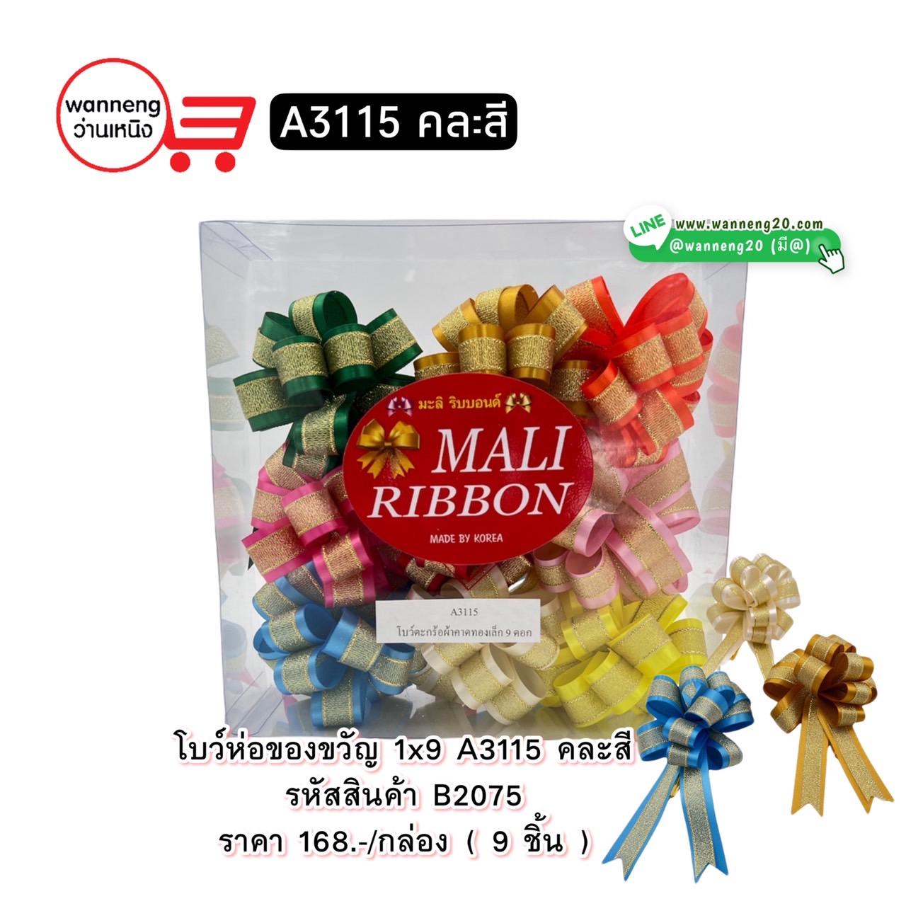 B2075 โบว์ห่อของขวัญ 1x9 A3115 คละสี 1 กล่อง 9 ชิ้น