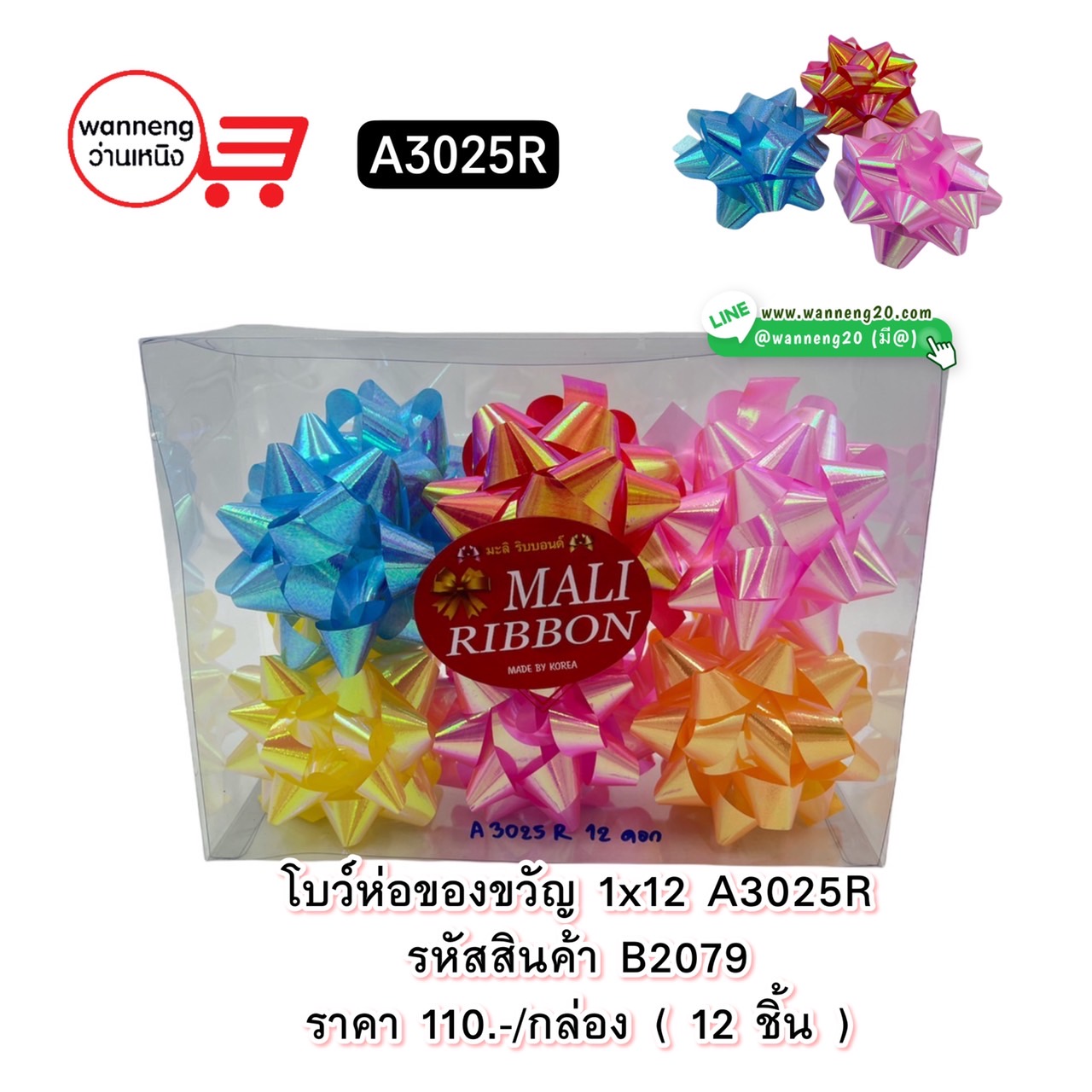 B2079 โบว์ห่อของขวัญ 1x12 A3025R 1 กล่อง 12 ชิ้น
