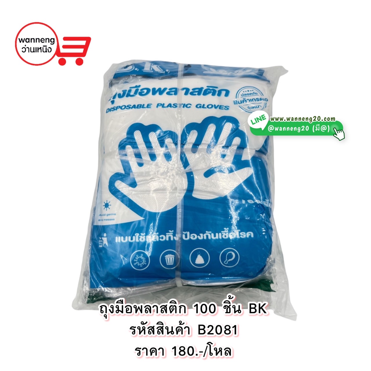 B2081 ถุงมือพลาสติก 100 ชิ้น BK 1 โหล