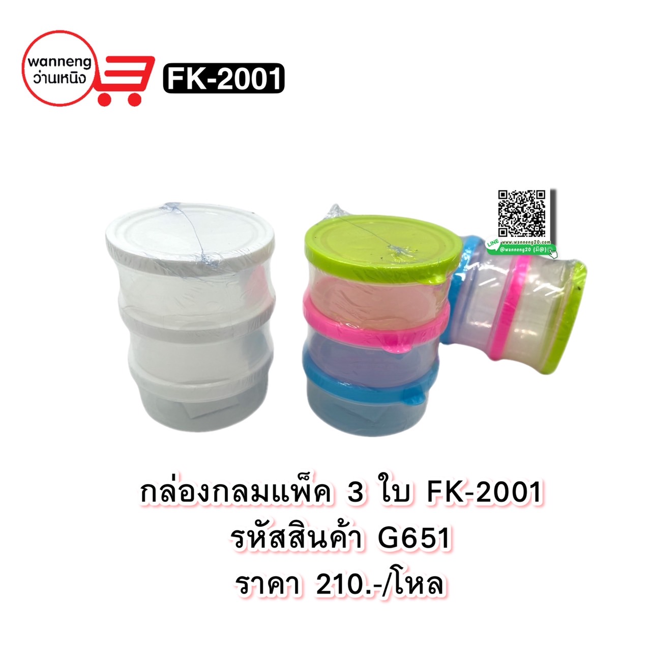 G651 กล่องกลมแพ็ค3ใบ FK-2001 1 โหล