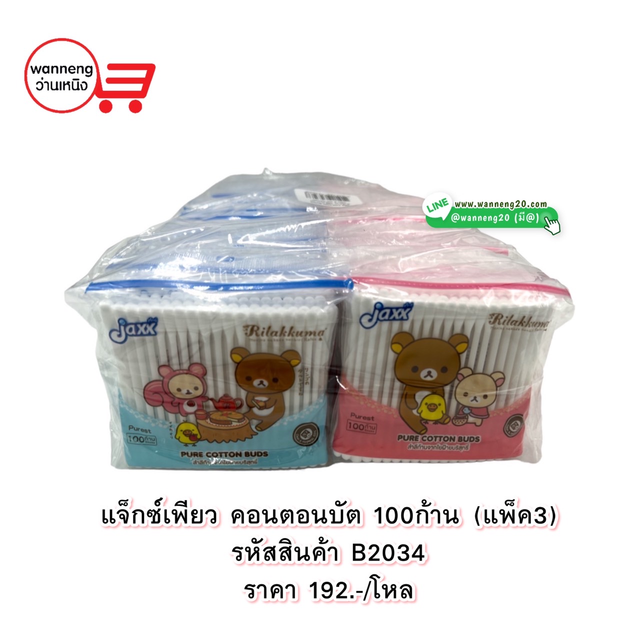 B2034 แจ็กซ์เพียว คอตตอนบัด 100 ก้าน (แพ็ค3) 1 โหล