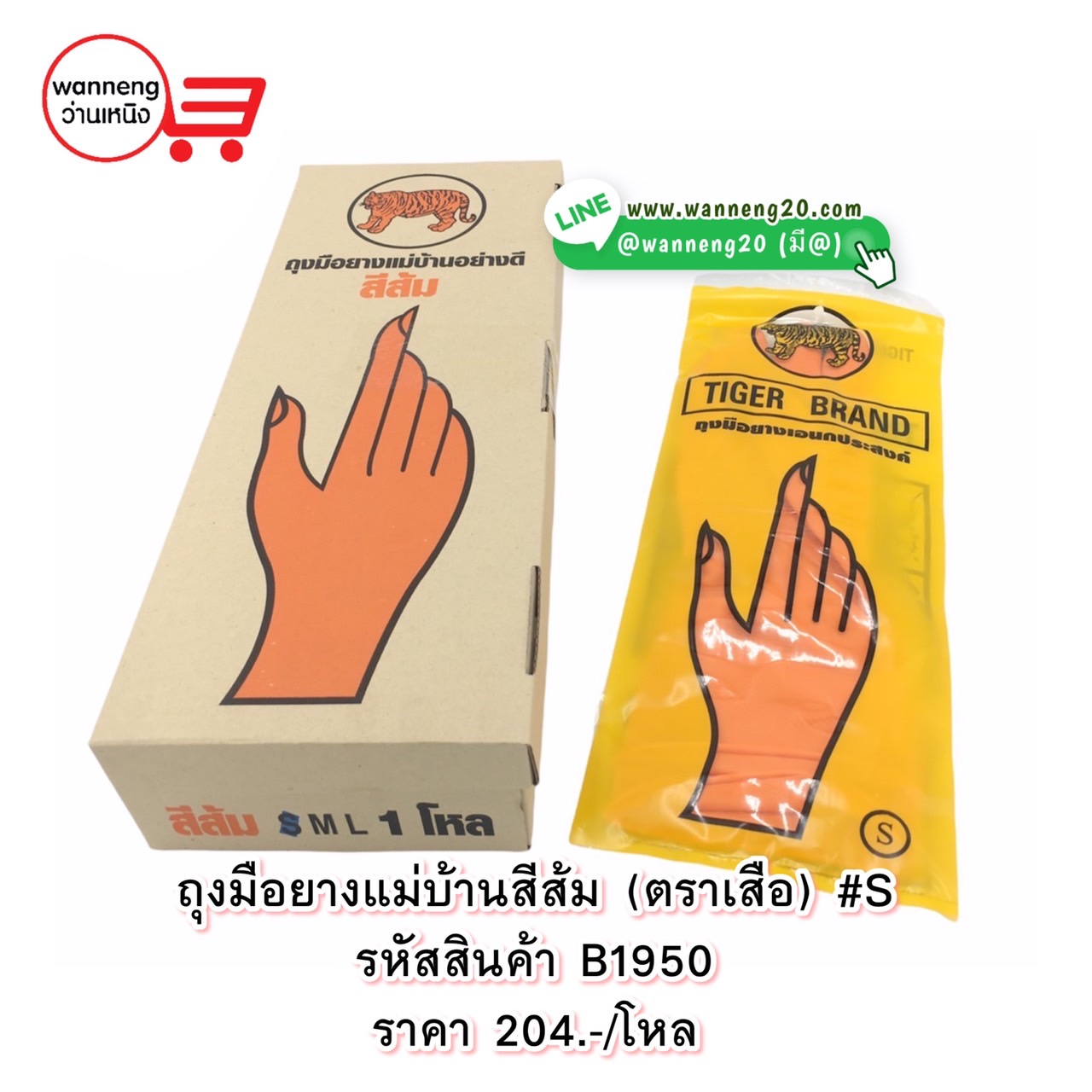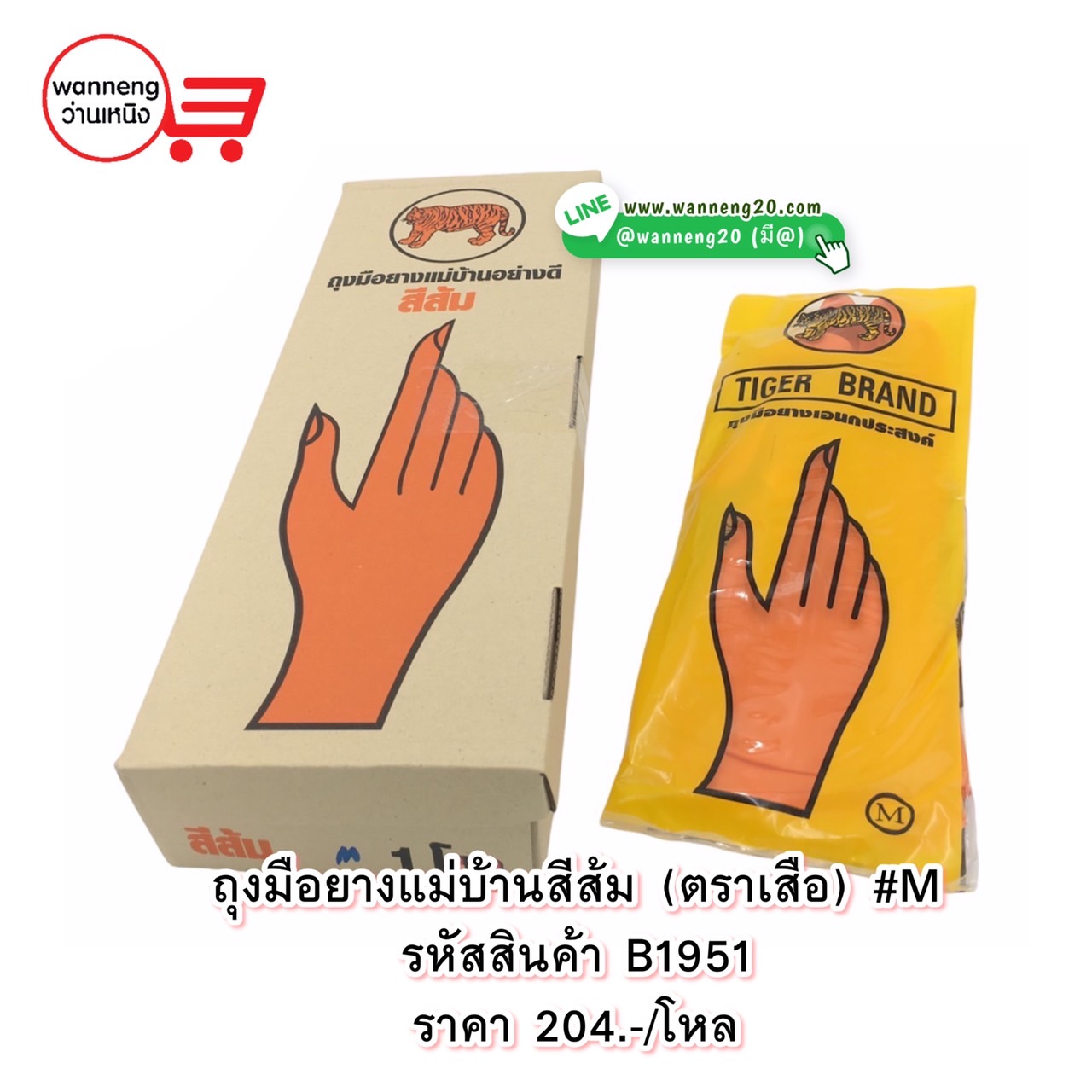 B1951 ถุงมือยางแม่บ้านสีส้ม (ตราเสือ) #M 1 โหล