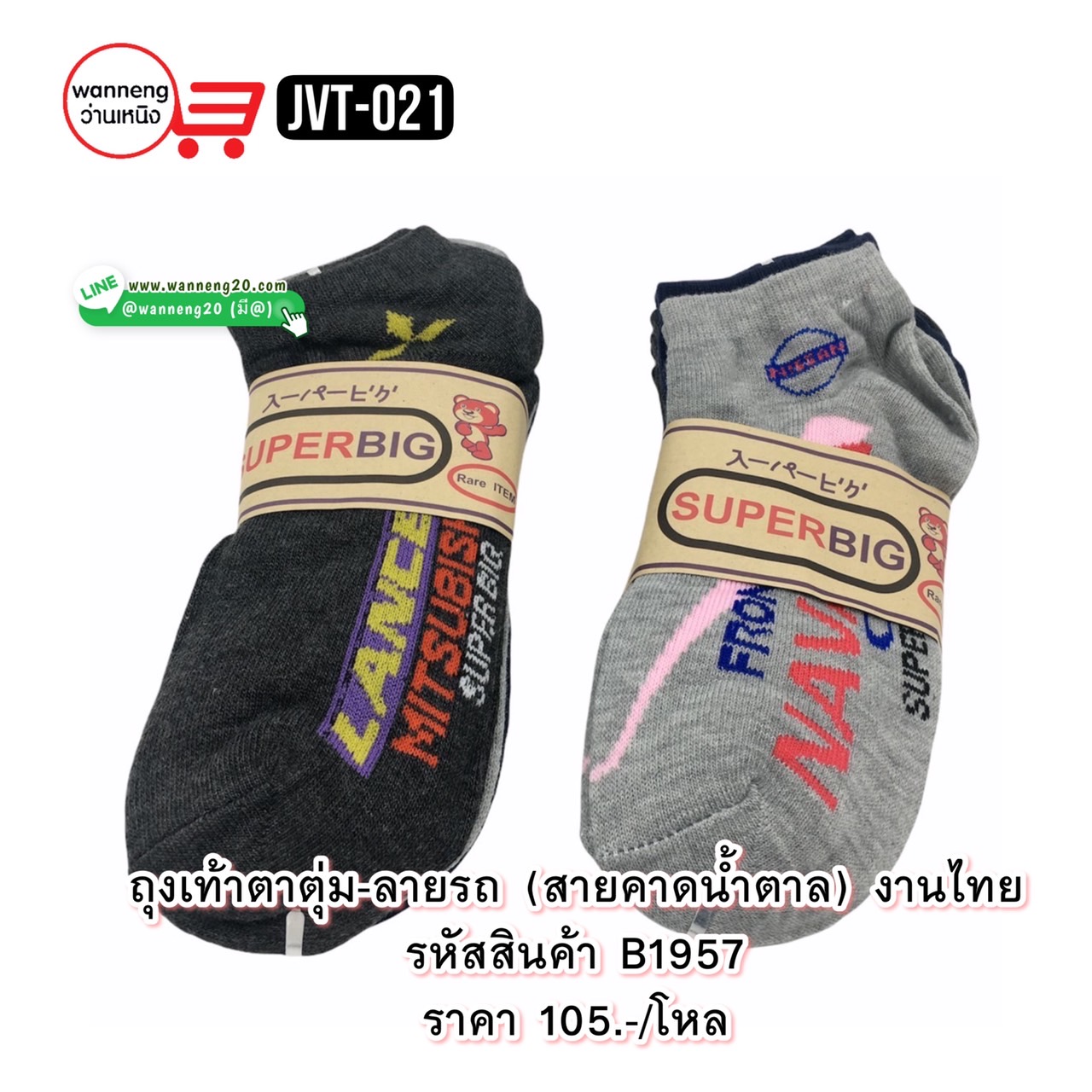 B1957 ถุงเท้าตาตุ่ม-ลายรถ (สายคาดน้ำตาล) งานไทย JVT-021 1 โหล