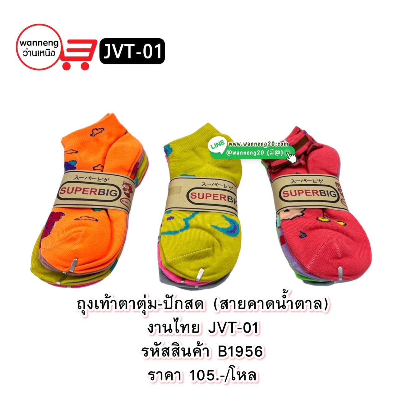 B1956 ถุงเท้าตาตุ่ม-ปักสด (สายคาดน้ำตาล) งานไทย JVT-01 1 โหล