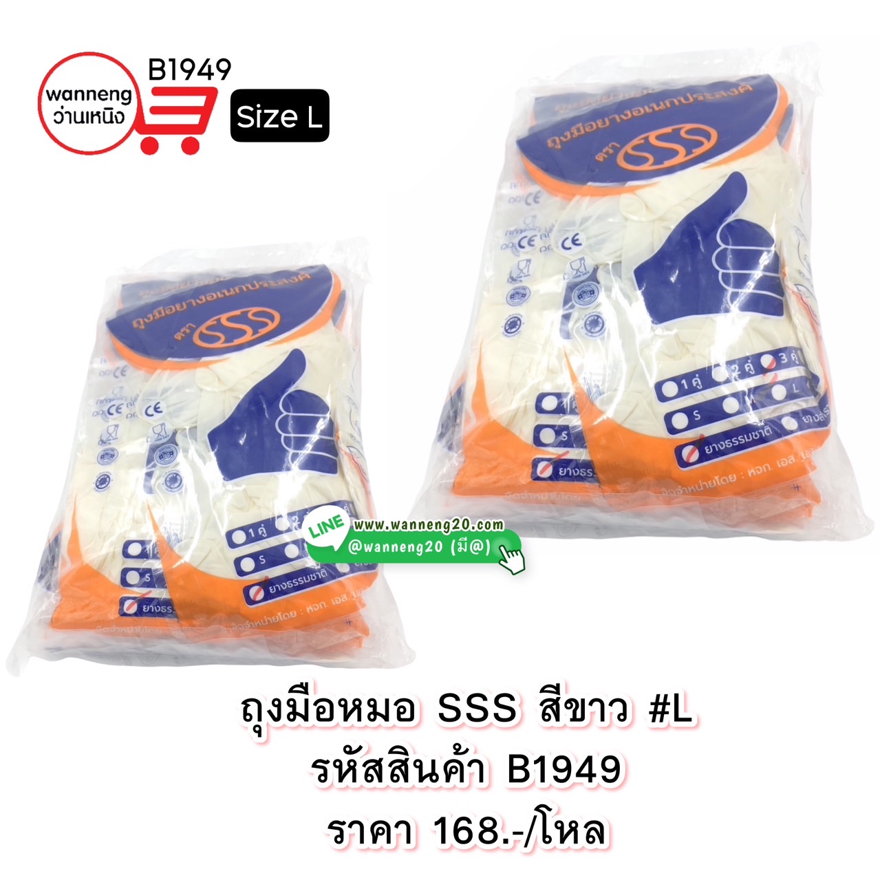 B1949 ถุงมือหมอ SSS สีขาว #L 1 โหล