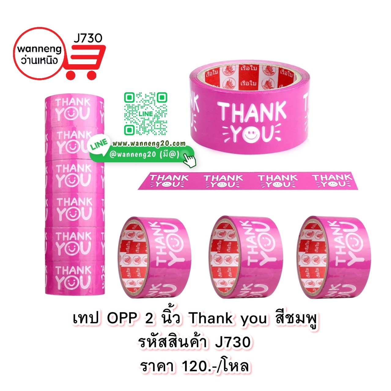J730 เทป opp 2 นิ้ว Thank you ชมพู 1 โหล