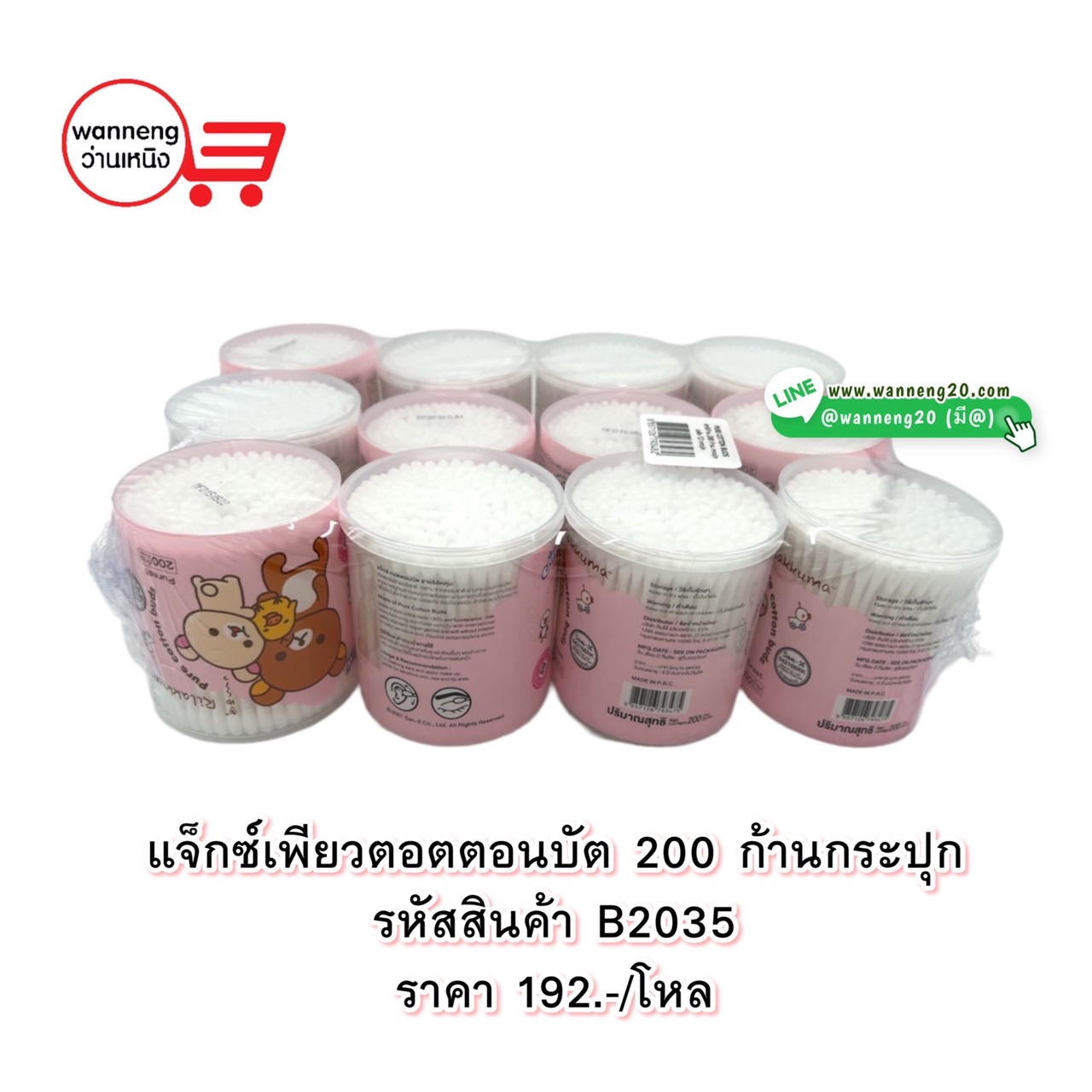 B2035 แจ็กซ์เพียว คอตตอลบัด 200 ก้าน (กระปุก) 1 โหล