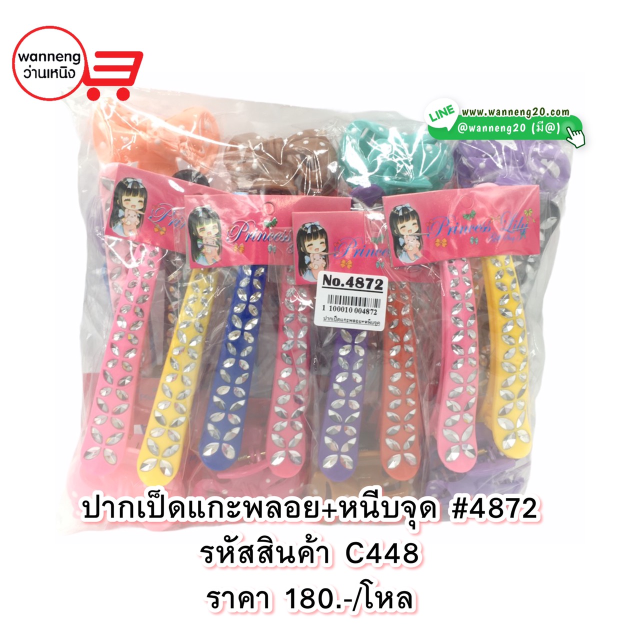 C448 ปากเป็ดแกะพลอย+หนีบจุด #4872 1 โหล