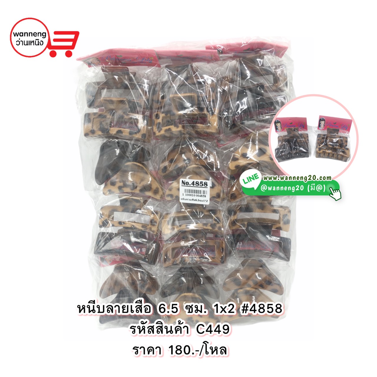 C449 หนีบลายเสือ 6.5 ซม. 1x2 #4858 1 โหล