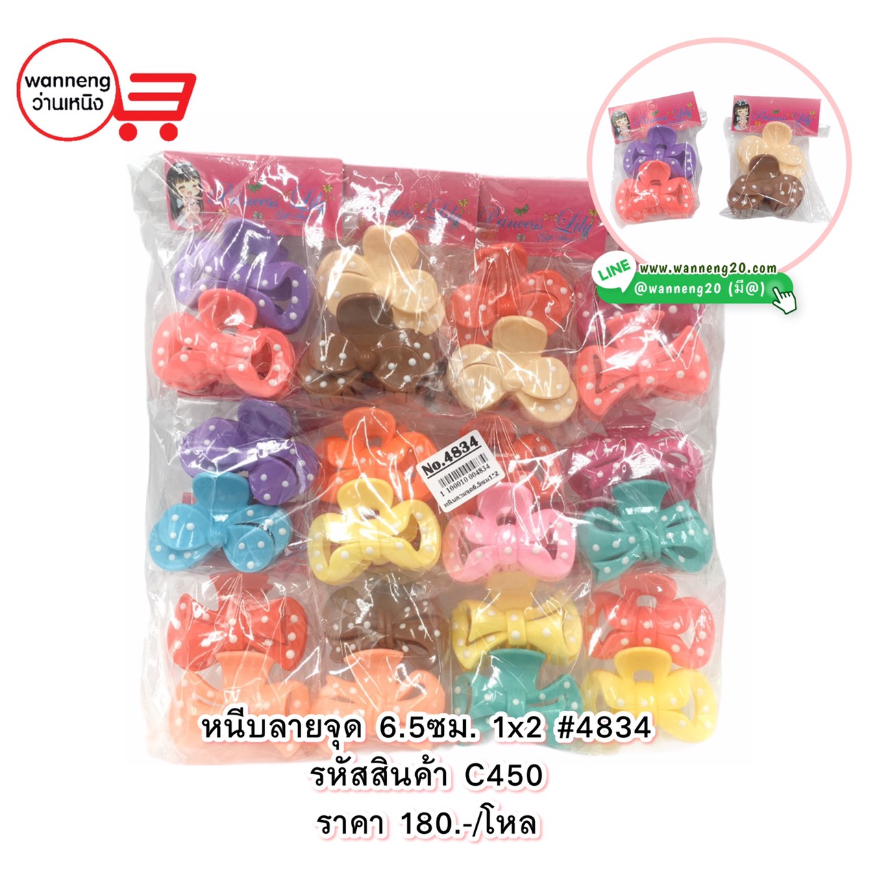 C450 หนีบลายจุด 6.5 ซม.1x2 #4834 1 โหล