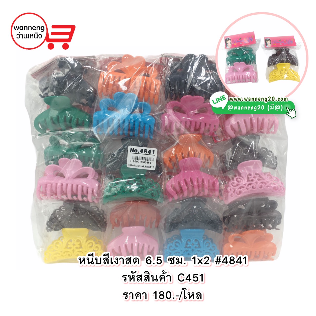 C451 หนีบเงาสีสด 6.5 ซม.1x2 #4841 1 โหล