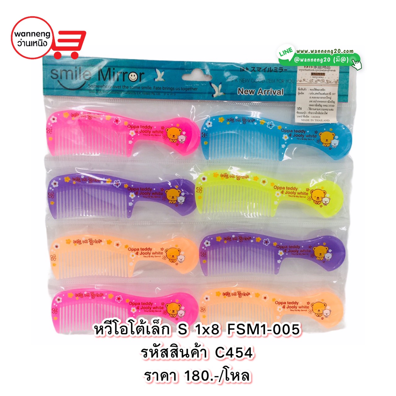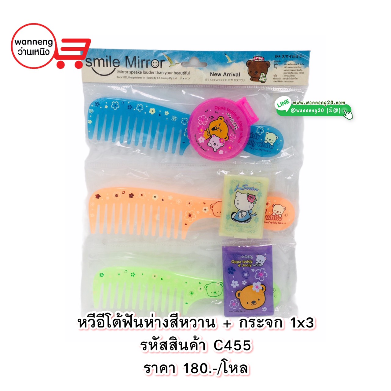 C455 หวีอีโต้ฟันห่างสีหวาน+กระจก 1x3 1 โหล