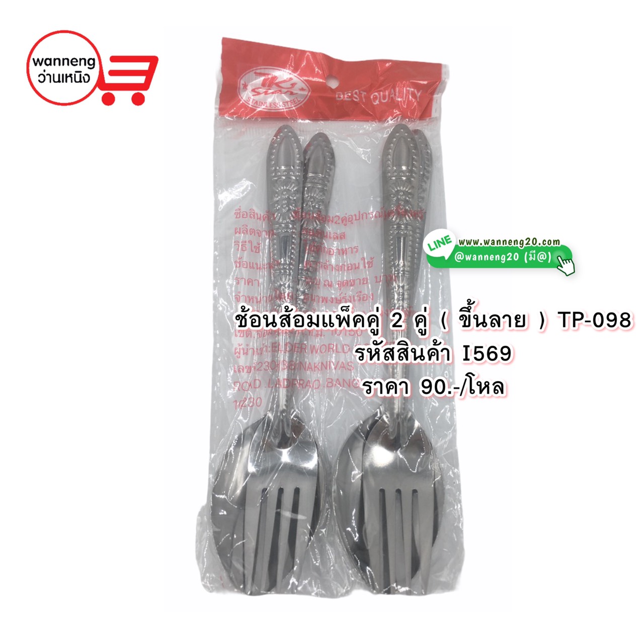 I569 ช้อนส้อมแพ็ค 2 คู่ (ขึ้นลาย) TP-098 1 โหล