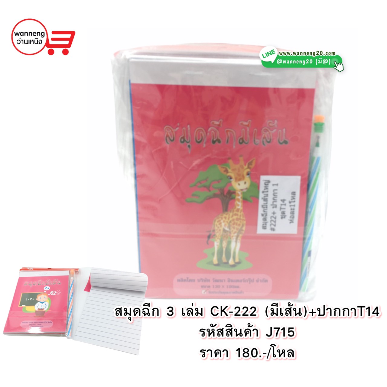 J715 สมุดฉีก 3 เล่ม CK-222 (มีเส้น) + ปากกา T14 1 โหล