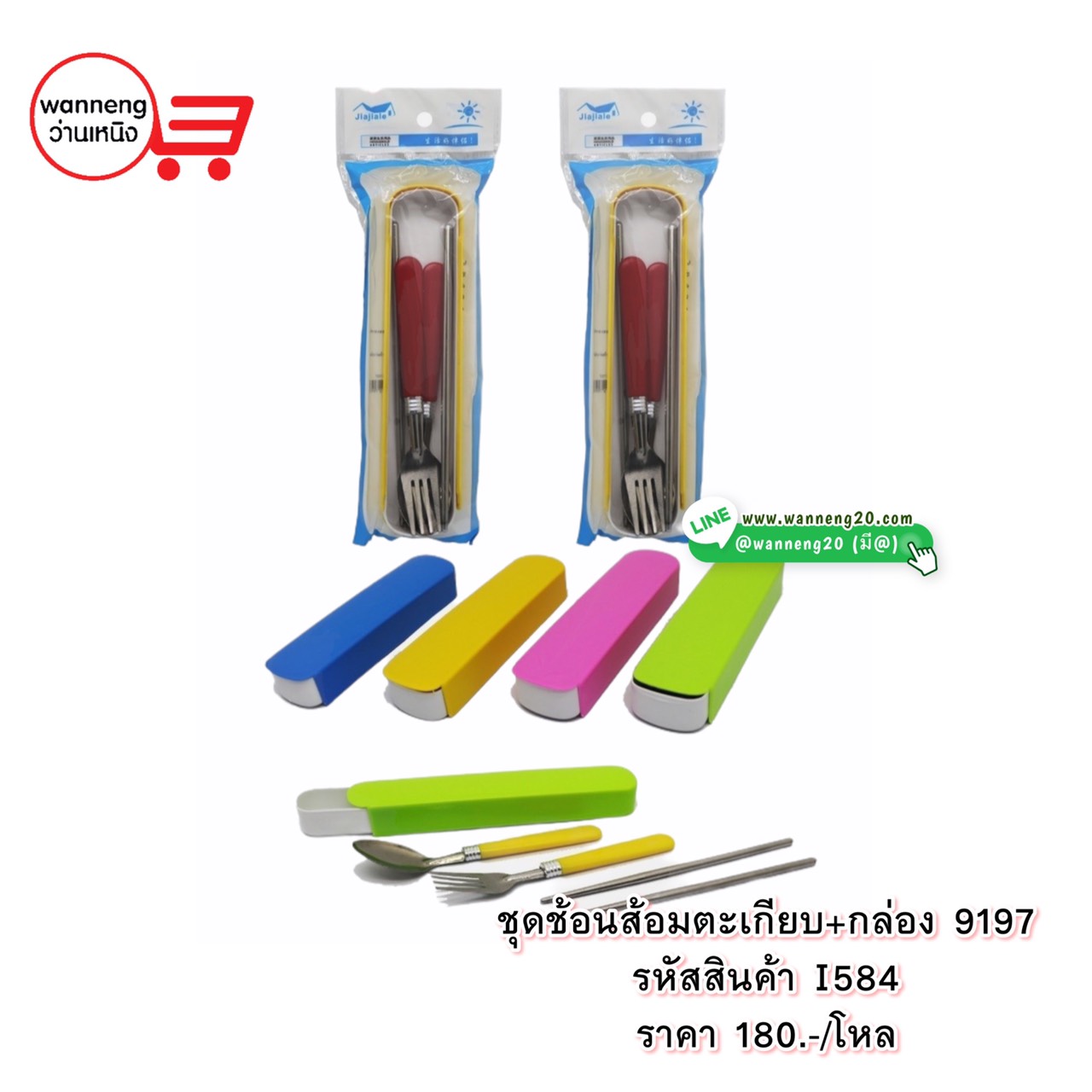 I584 ชุดช้อนส้อมตะเกียบ+กล่อง 9197 1 โหล