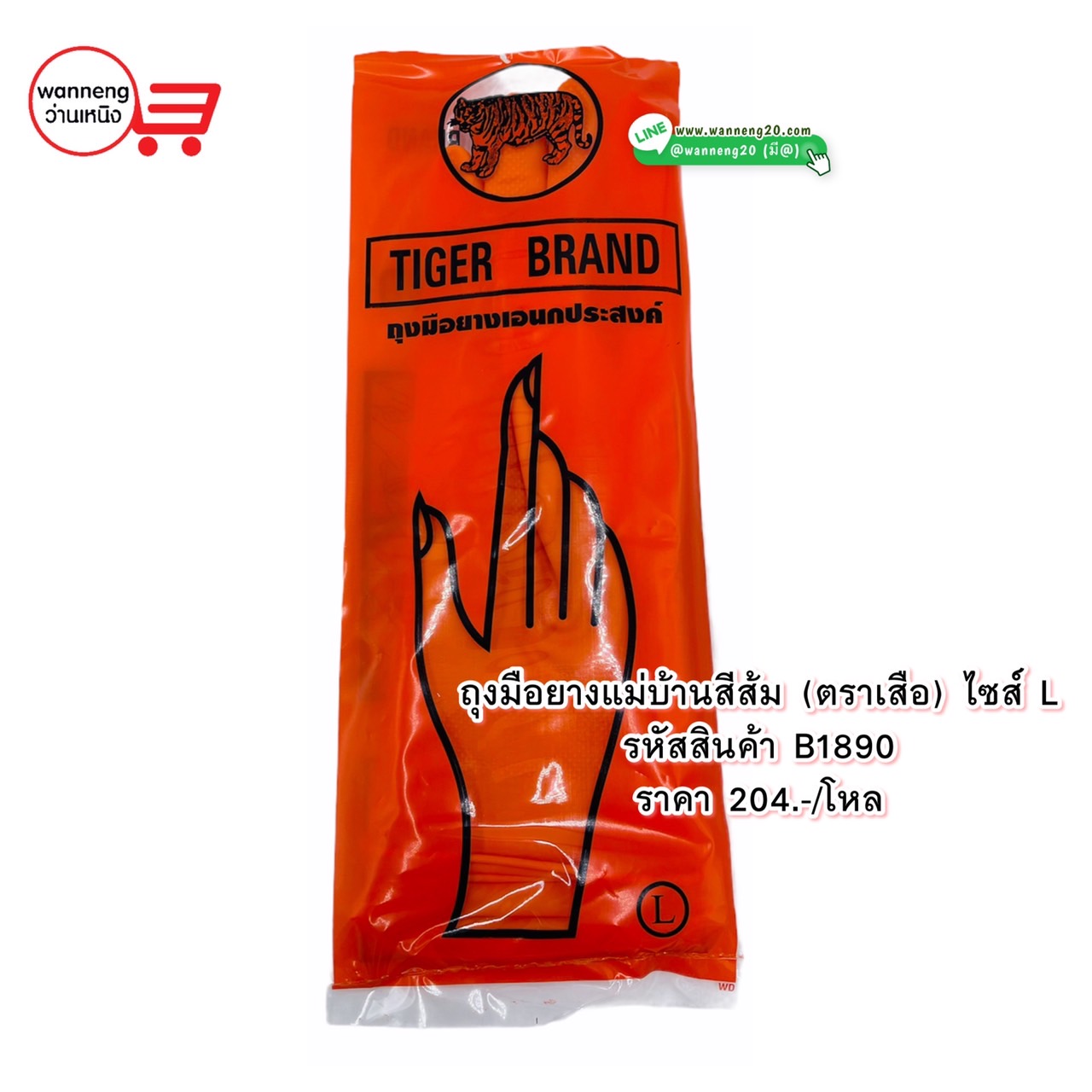 B1890 ถุงมือยางแม่บ้านสีส้ม (ตราเสือ) ไซส์L 1 โหล