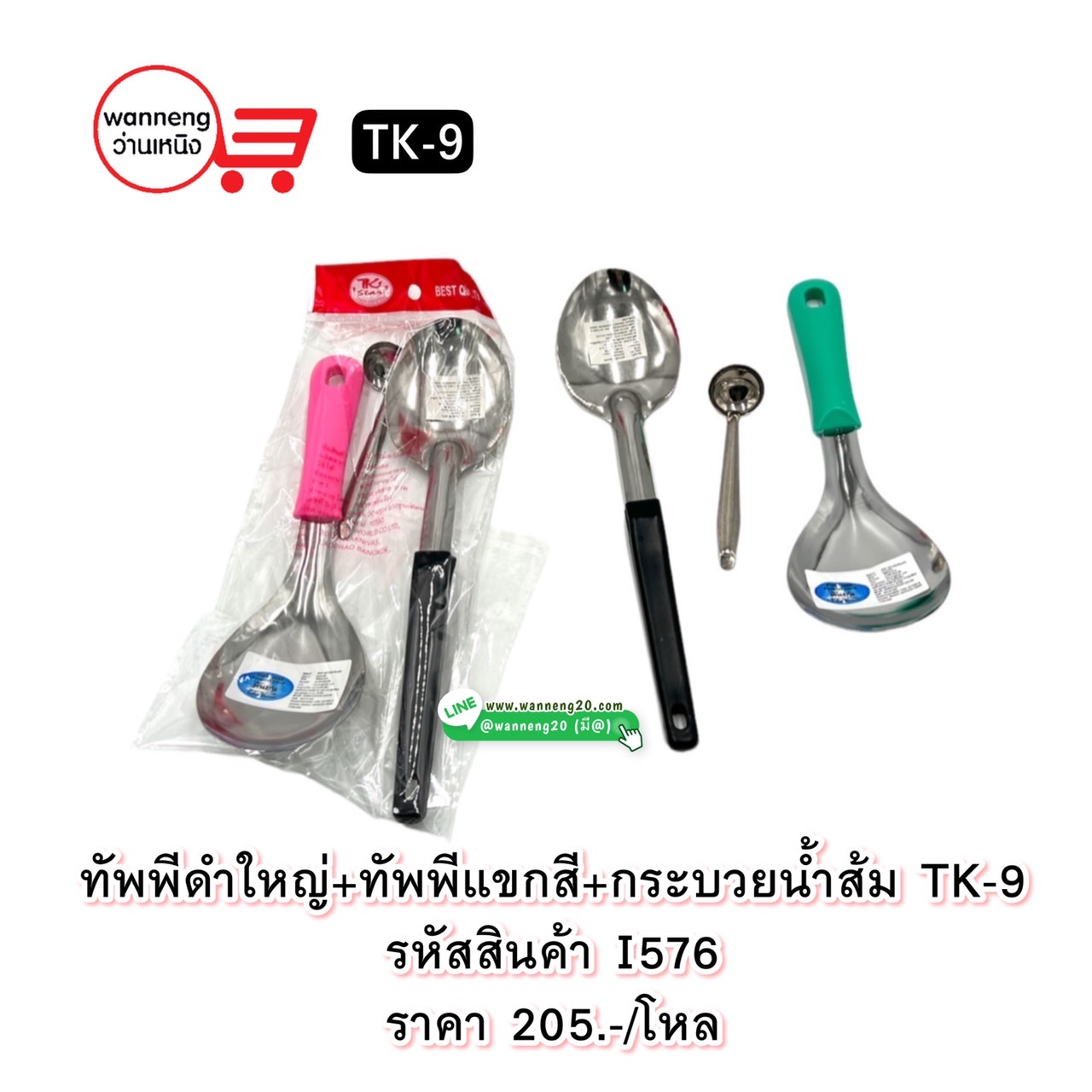 I576 ทัพพีใหญ่+ทัพพีแขกสี+กระบวยน้ำส้ม TK-9 1 โหล