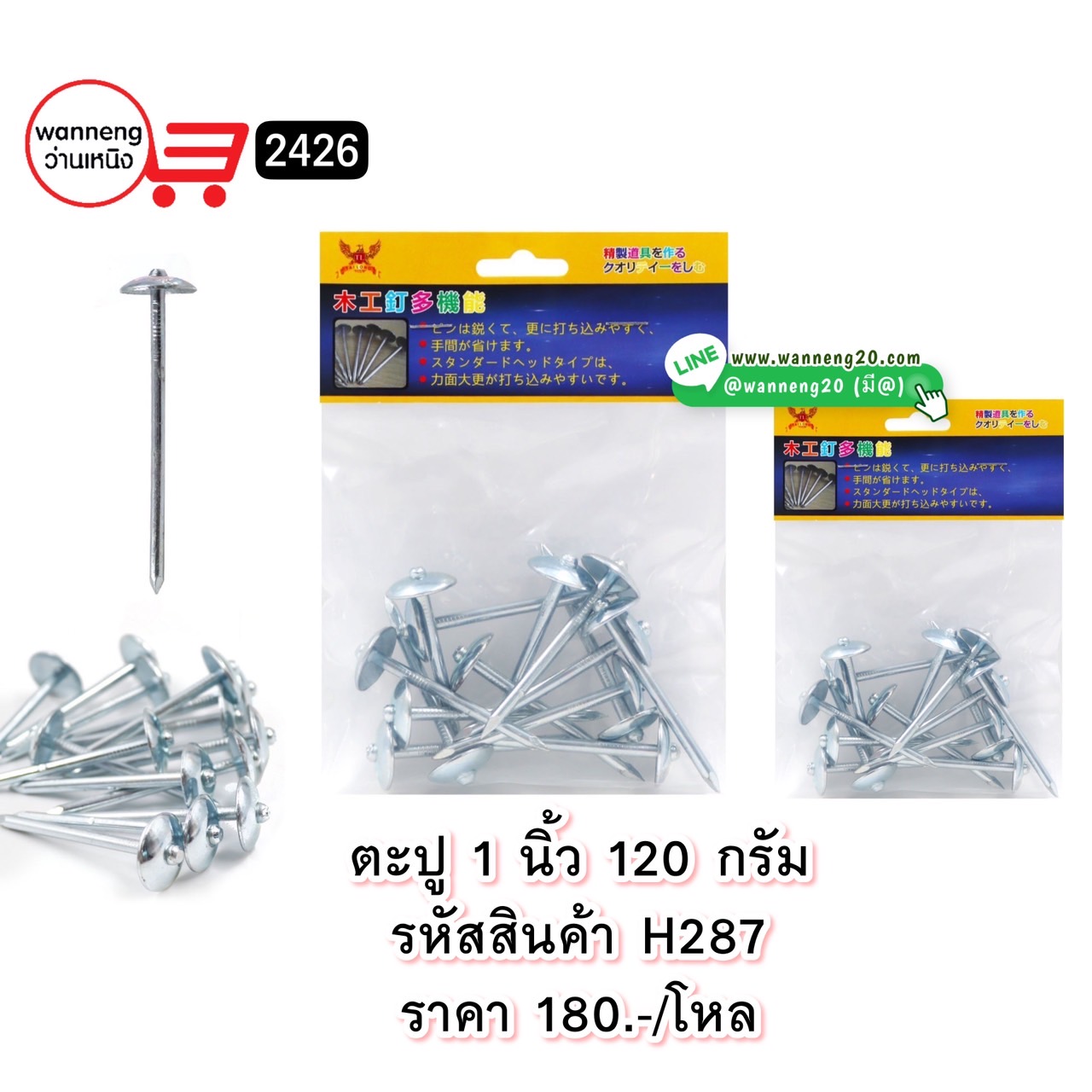 H287 ตะปู 1 นิ้ว 120 กรัม 2426 1 โหล