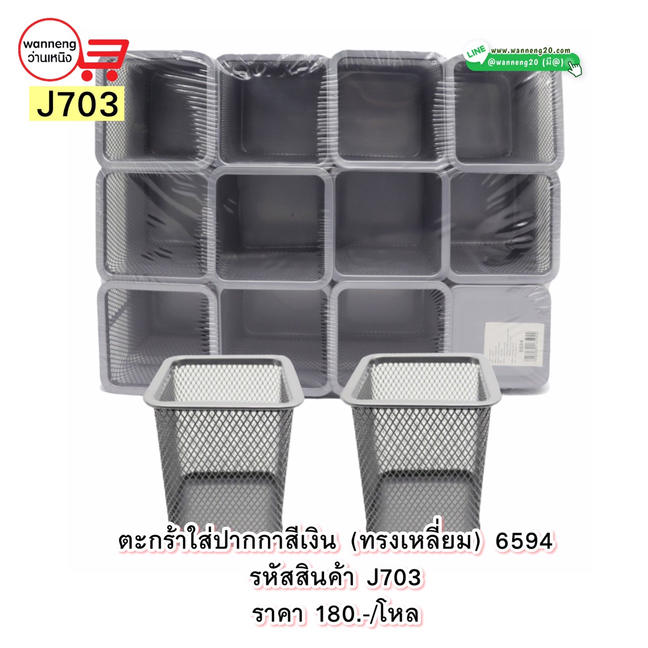 J703 ตะกร้าใส่ปากกาสีเงิน (ทรงเหลี่ยม) 6954 1 โหล