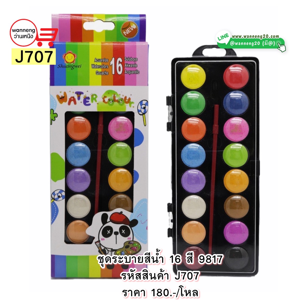 J707 ชุดระบายสีน้ำ 16 สี 9817 1 โหล