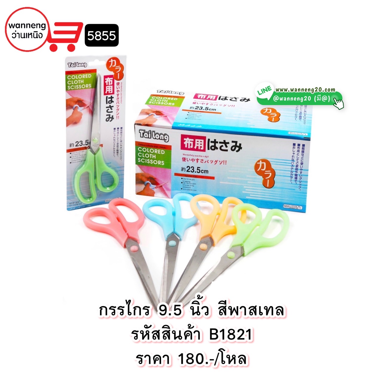 B1821 กรรไกร 9.5 นิ้ว สีพาสเทล 5855 1 โหล