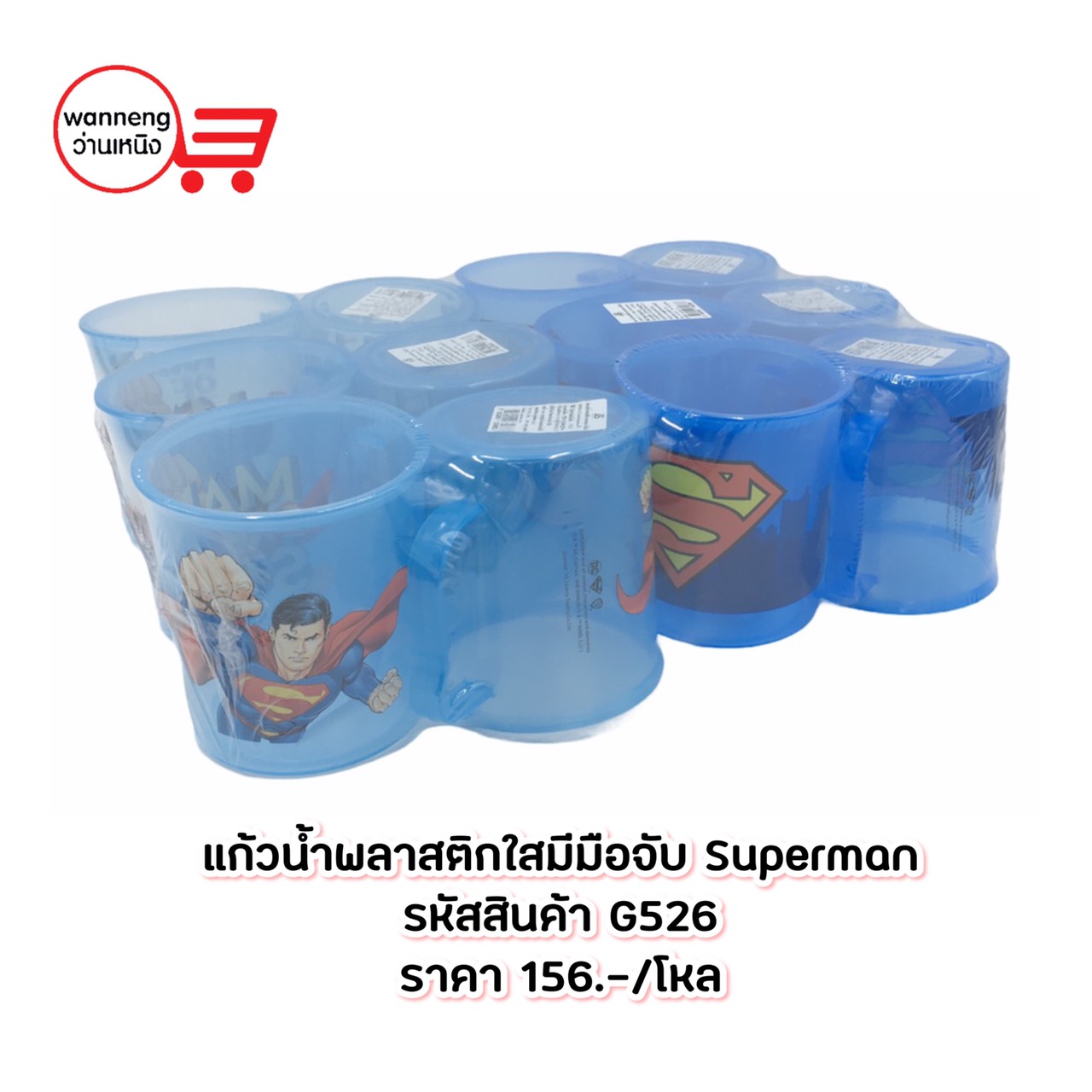 G526 แก้วน้ำพลาสติกใสมีมือจับ Superman 1 โหล