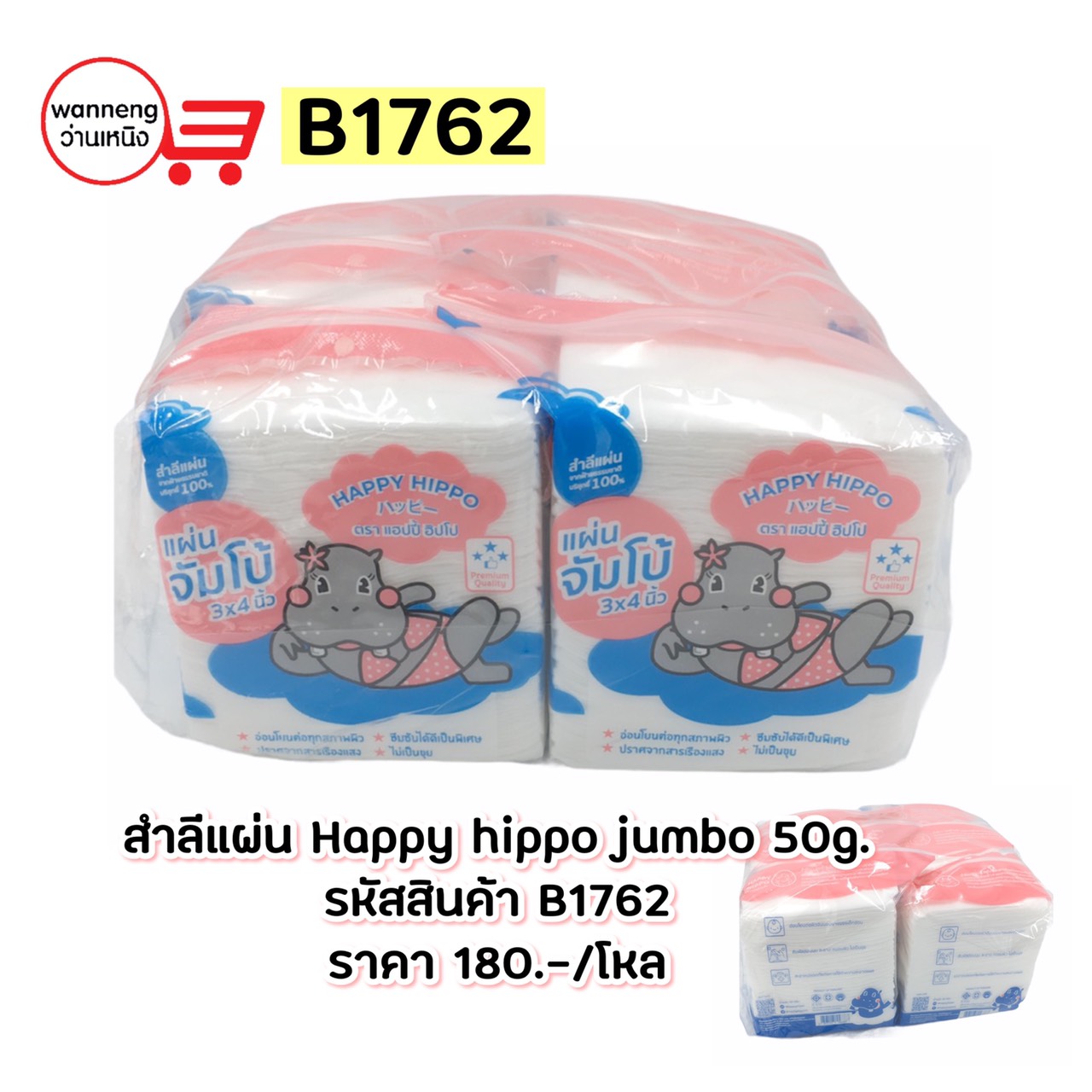 B1762 สำลีแผ่น Happy hippo jumbo 50g. 1 โหล