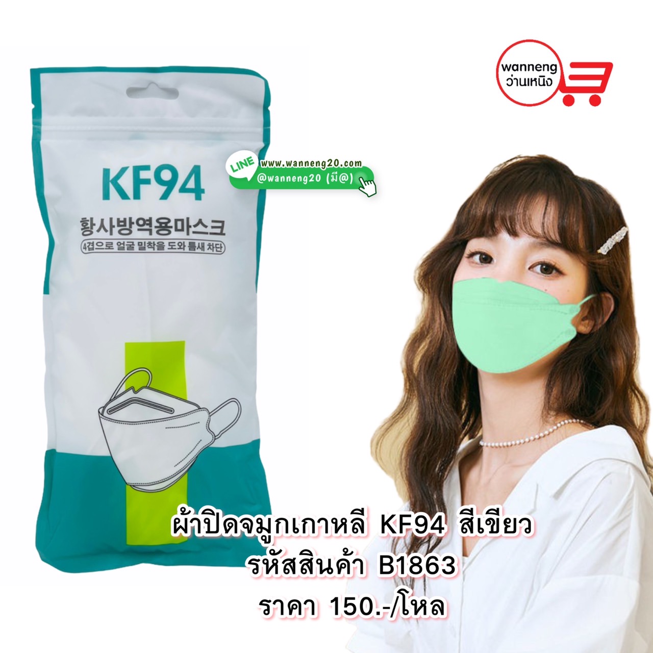 B1863 ผ้าปิดจมูกเกาหลี KF94 สีเขียว 1 โหล