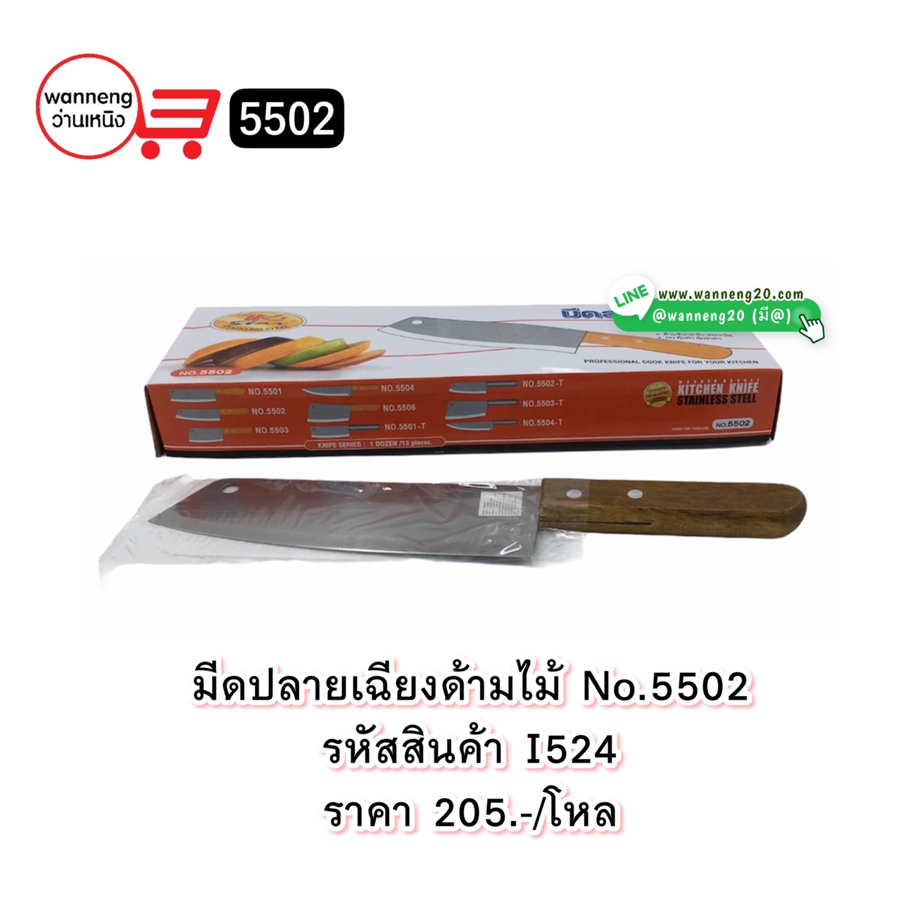 I524 มีดปลายเฉียด้ามไม้ No.5502 1 โหล