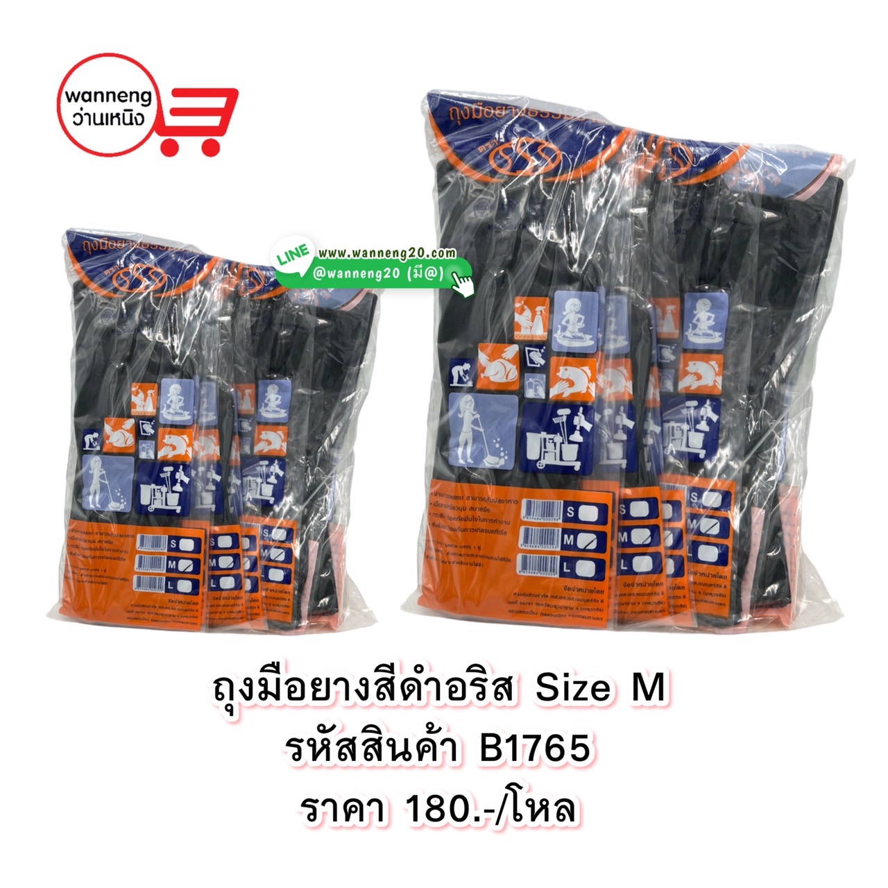 B1765 ถุงมือยางสีดำอริส size m 1 โหล