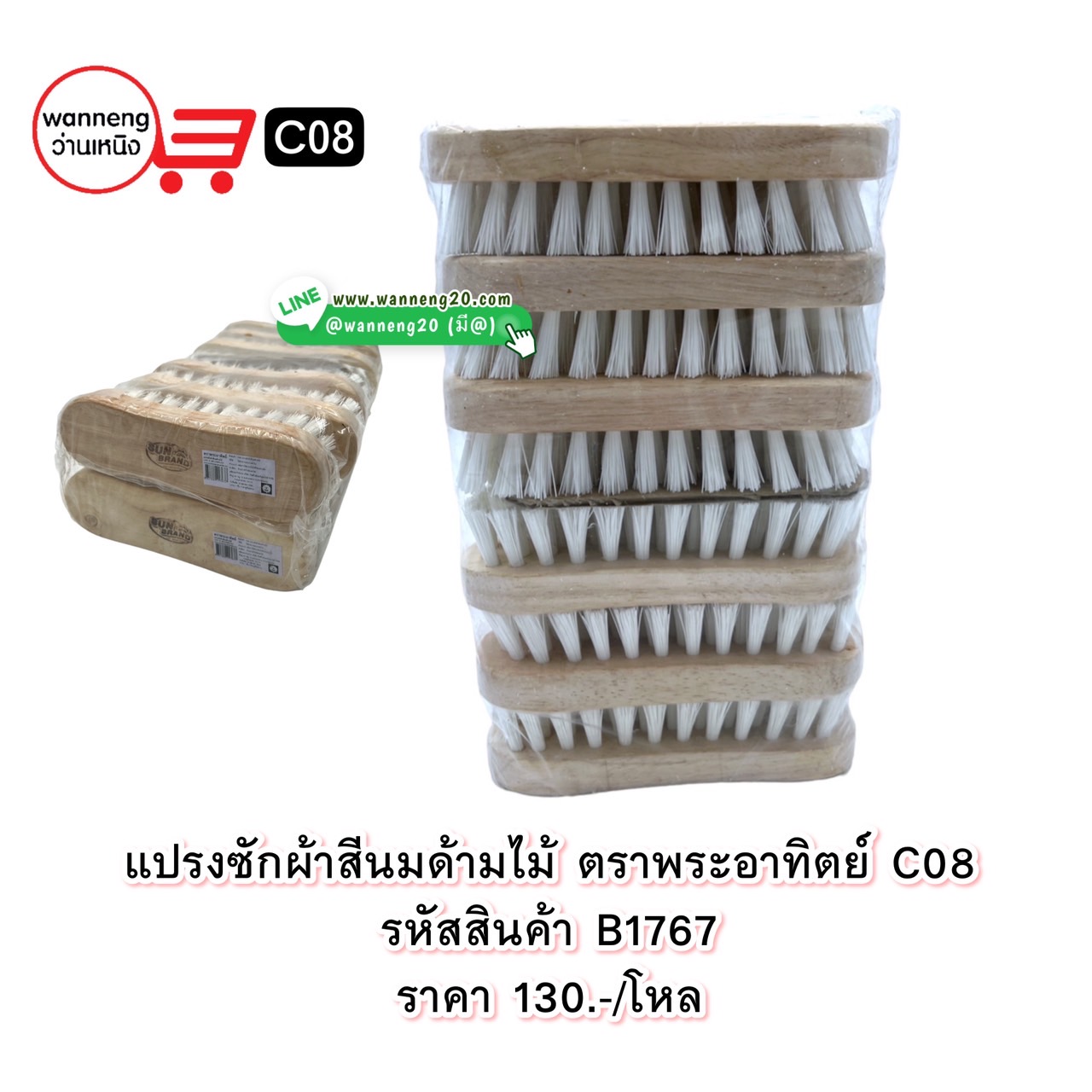 B1767 แปรงซักผ้าสีนมด้ามไม้ ตราพระอาทิตย์ C08 1 โหล