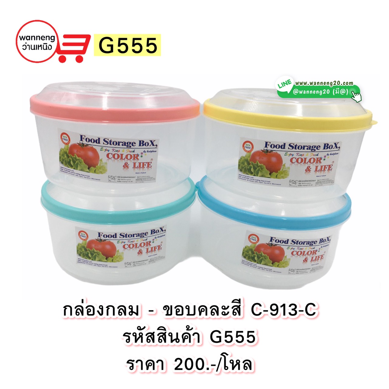 G555 กล่องกลม-ขอบคละสี C-913-C 1 โหล