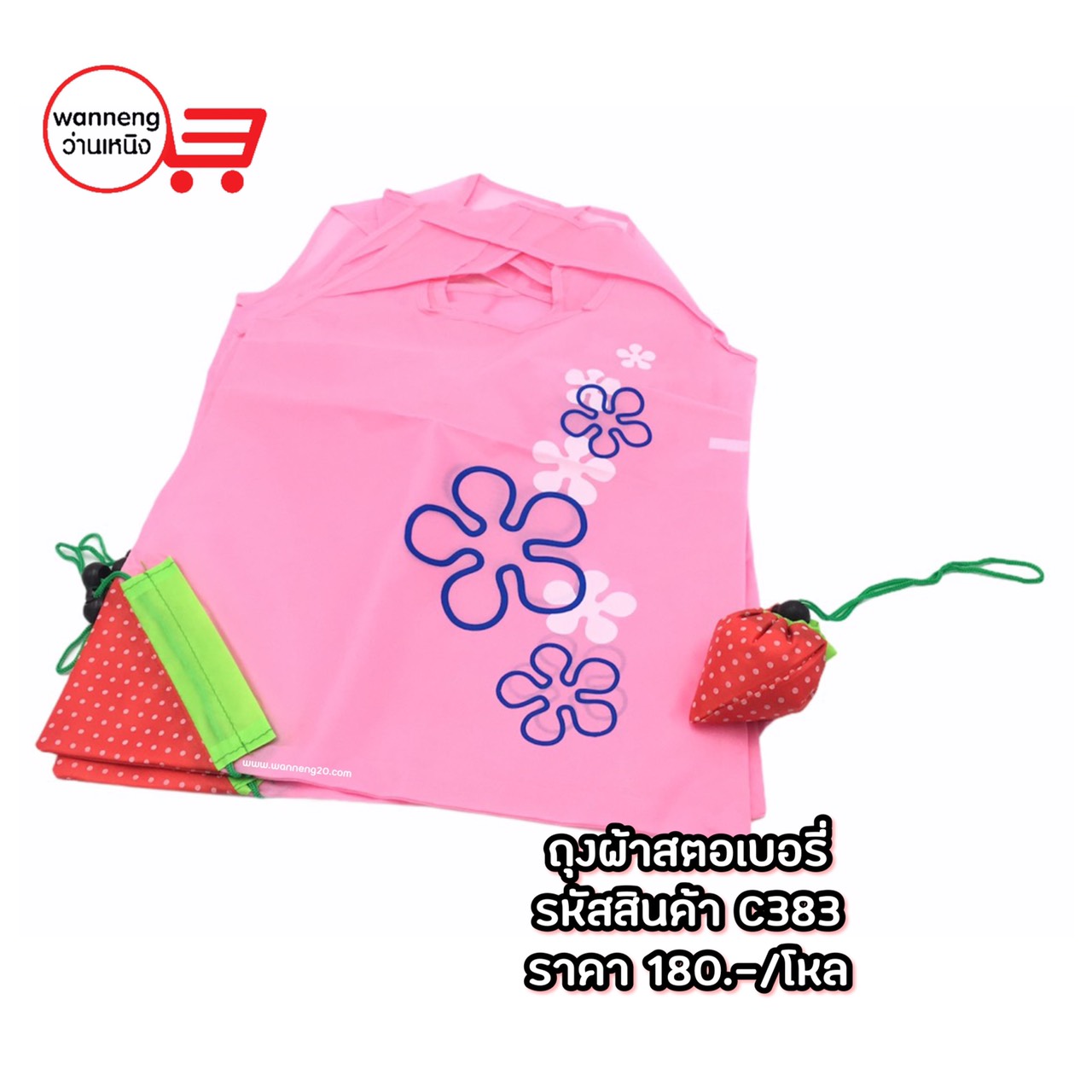 C383 ถุงผ้าสตอเบอรี่ 1 โหล