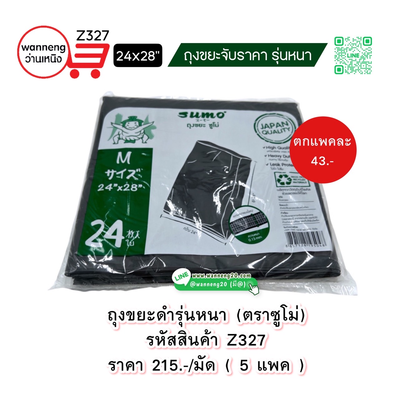 Z327 ถุงขยะดำรุ่นหนา 24x28 นิ้ว (ตราซูโม่)1 มัด 5 แพค