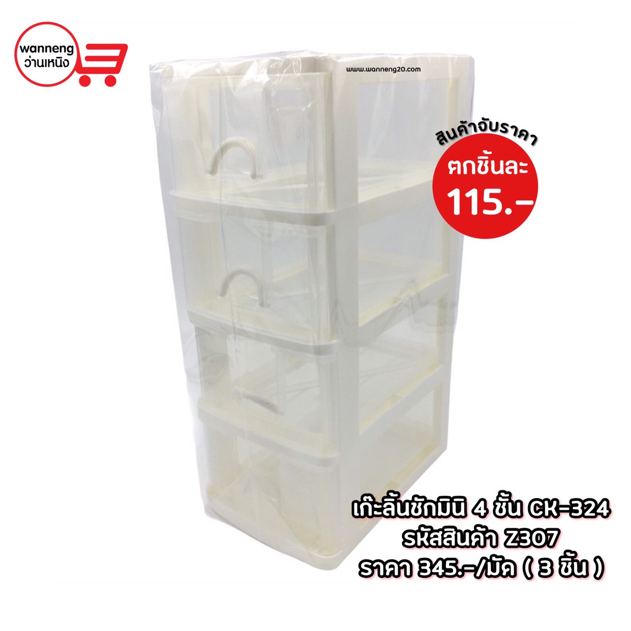 Z307 เก๊ะลิ้นชักมินิ 4 ชั้น CK-324 1 มัด 3 ชิ้น
