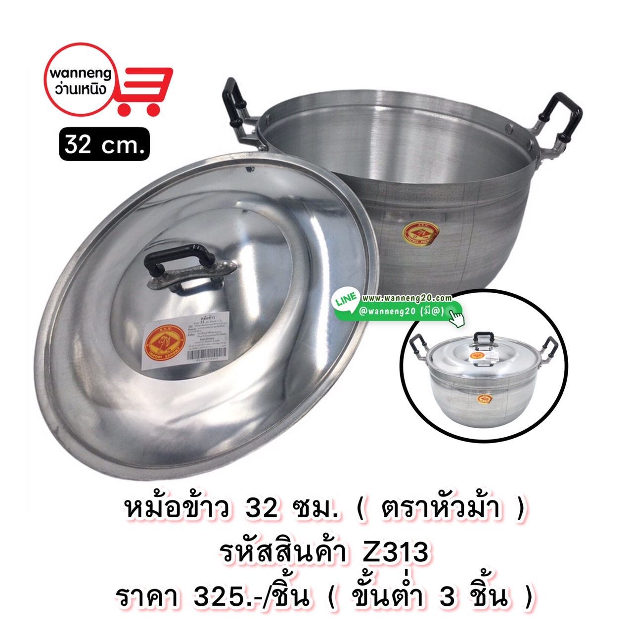 Z313 หม้อข้าว 32 ซม. (ตราหัวม้า) 1 ชิ้น (ขั้นต่ำ 3 ชิ้น)