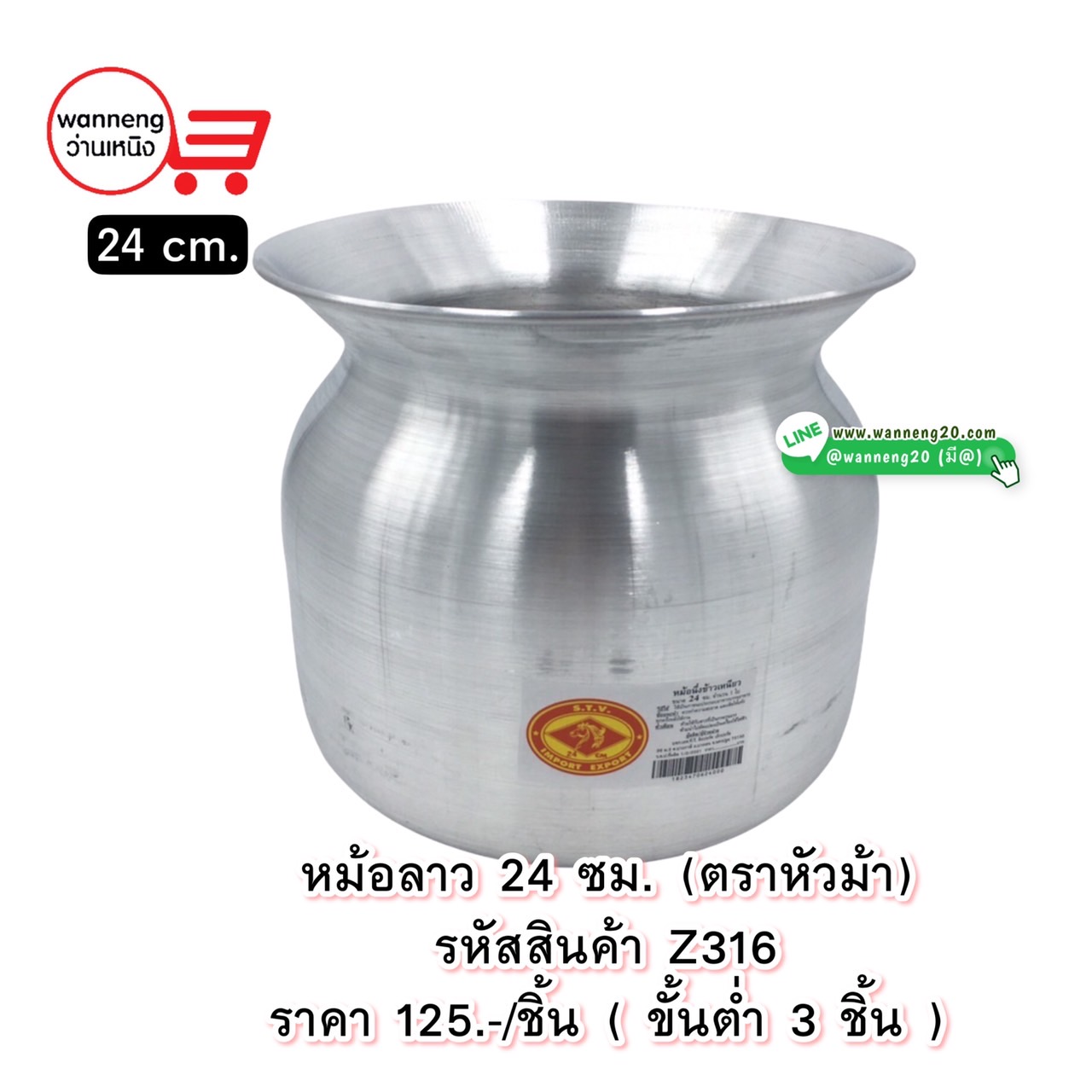 Z316 หม้อลาว 24 ซม. (ตราหัวม้า)1 ชิ้น (ขั้นต่ำ 3 ชิ้น)