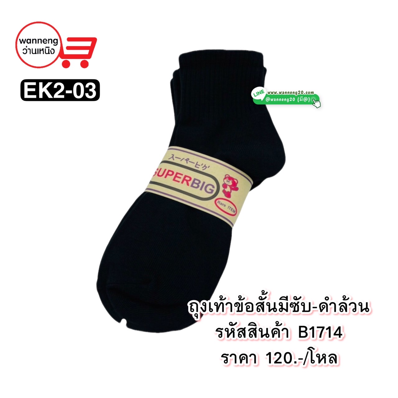 B1714 ถุงเท้าข้อสั้นมีซับ-ดำล้วน EK2-03 1 โหล