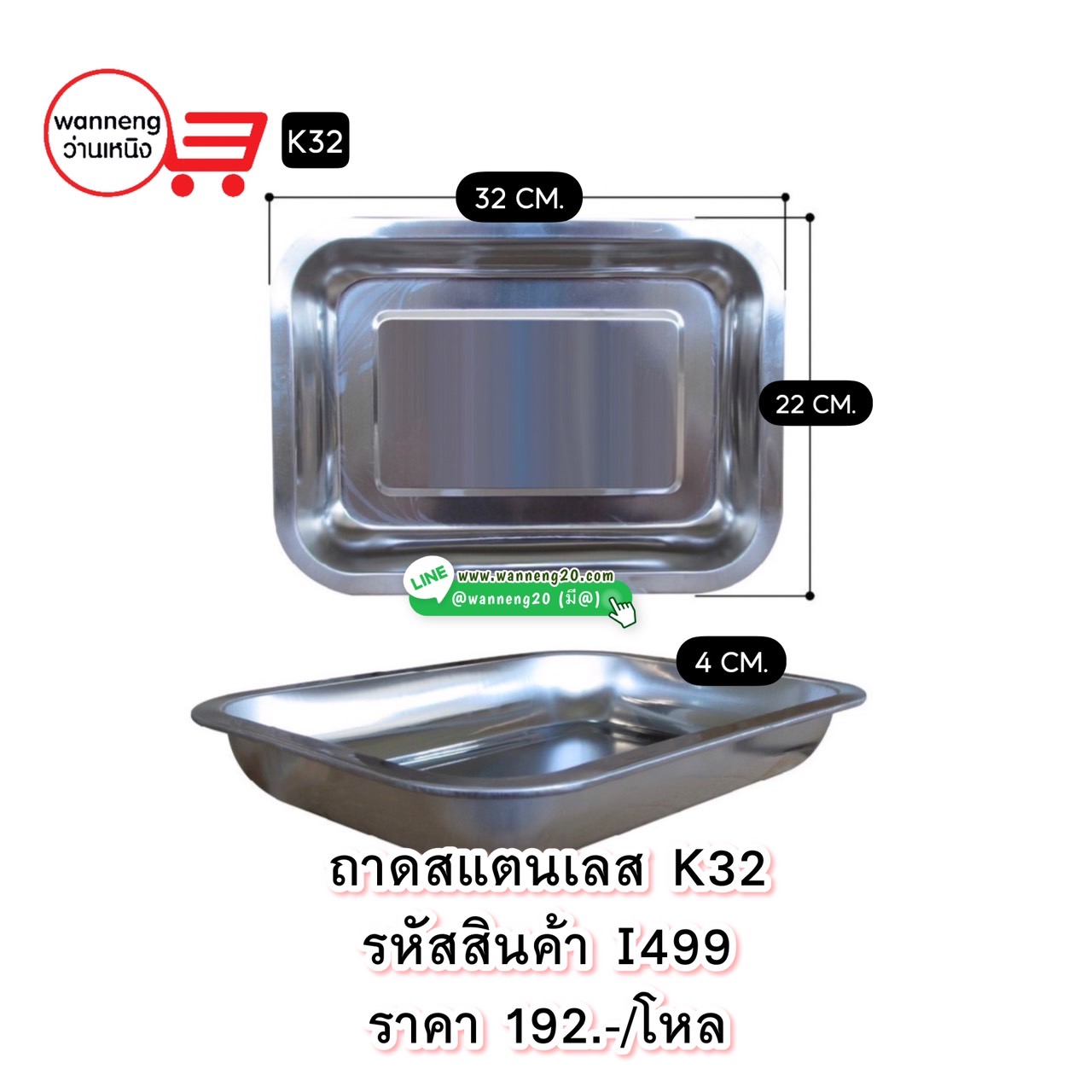 I499 ถาดสแตนเลส 32x22x4 cm. K32 1 โหล