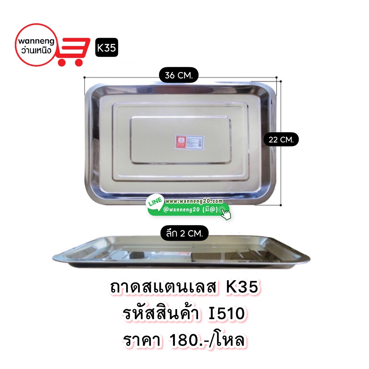 I510 ถาดสแตนเลส 36x22x2 cm. K35 1 โหล