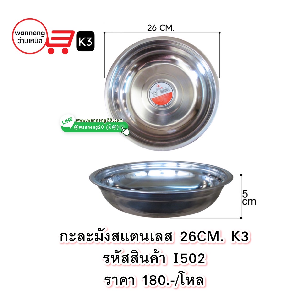 I502 กะละมังสแตนเลส 26 cm. K3 1 โหล