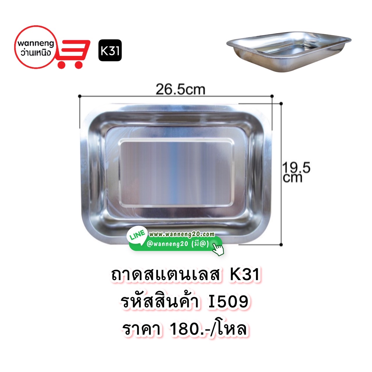 I509 ถาดสแตนเลส 20x27x4 cm. K31 1 โหล