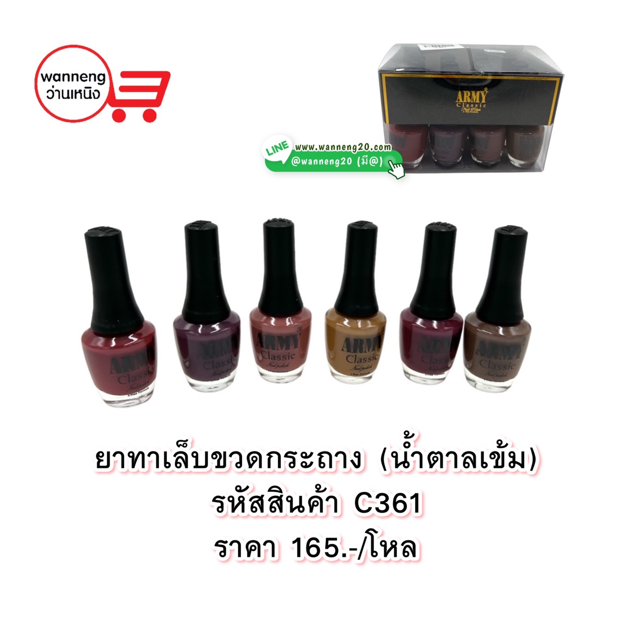 C361 ยาทาเล็บขวดกระถาง (น้ำตาลเข้ม) 1 โหล
