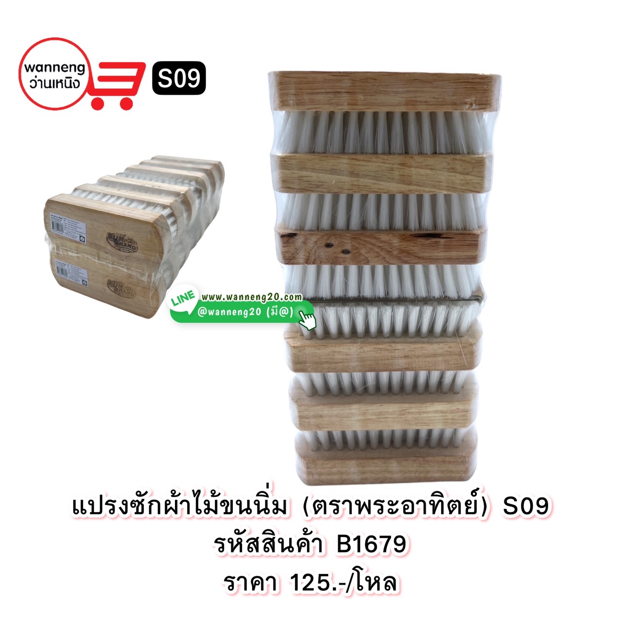 B1679 แปรงซักผ้าไม้ขนนิ่ม (ตราพระอาทิตย์) S09 1 โหล