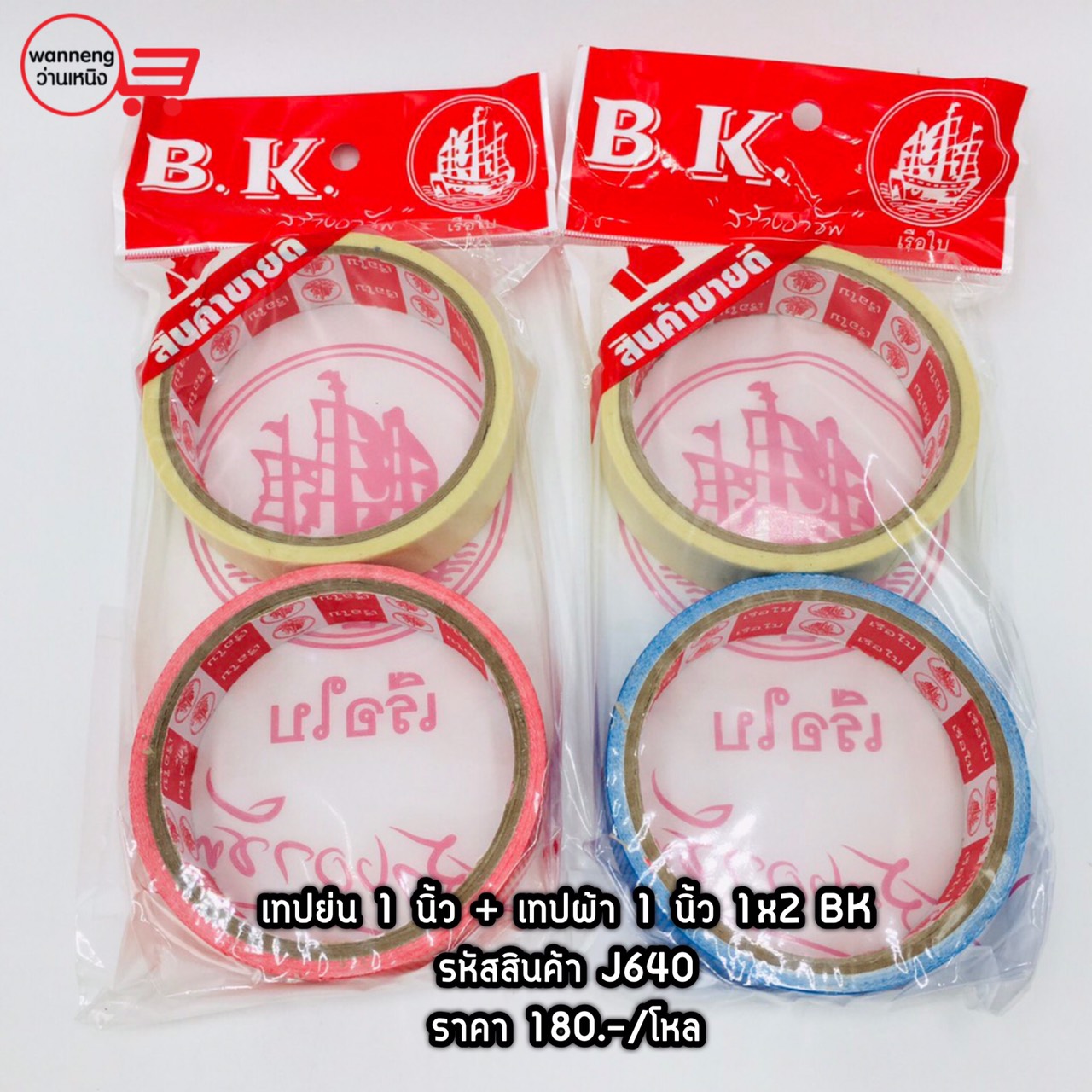 J640 เทปย่น 1 นิ้ว + เทปผ้า 1x2 BK 1 โหล